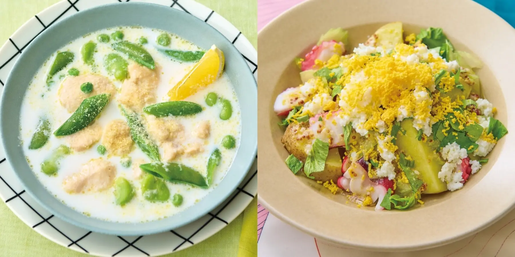 人気の春野菜レシピ! おかずにもなる、春のスープとミモザサラダをご紹介